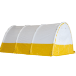 Les tentes gonflables à arceaux de Karsten Tenten sont une référence depuis des années. L’ armature de ces tentes se compose principalement de boudins gonflables avec un tuyau intérieur synthétique et une protection en polyester, répondant aux exigences les plus strictes. À l’ aide d’ un compresseur ou de bouteilles d’ air comprimé, la tente est prête à l’ emploi en dix à quinze minutes. La tente à arceaux est facile à monter et à transporter. Une fois dégonflée, la tente forme un ensemble compact. La tente à arceaux en polyester est livrée en blanc de série. La toile est très translucide, ce qui rend le travail à l’ intérieur de la tente agréable. Si nécessaire, l’ ensemble est renforcé par du PVC enduit de bisonyl, de couleur jaune par défaut. Si possible, ces tentes peuvent être entièrement adaptées à vos spécifications.